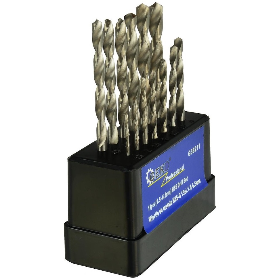 Deze set bestaat uit 13 HSS-boren (High Speed Steel) in maten van 1,5 tot 6,5 mm. De boren hebben een cilindrische schacht en zijn speciaal ontworpen voor het boren in staal, metaal en soortgelijke materialen.
