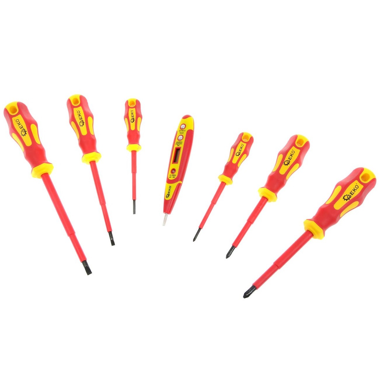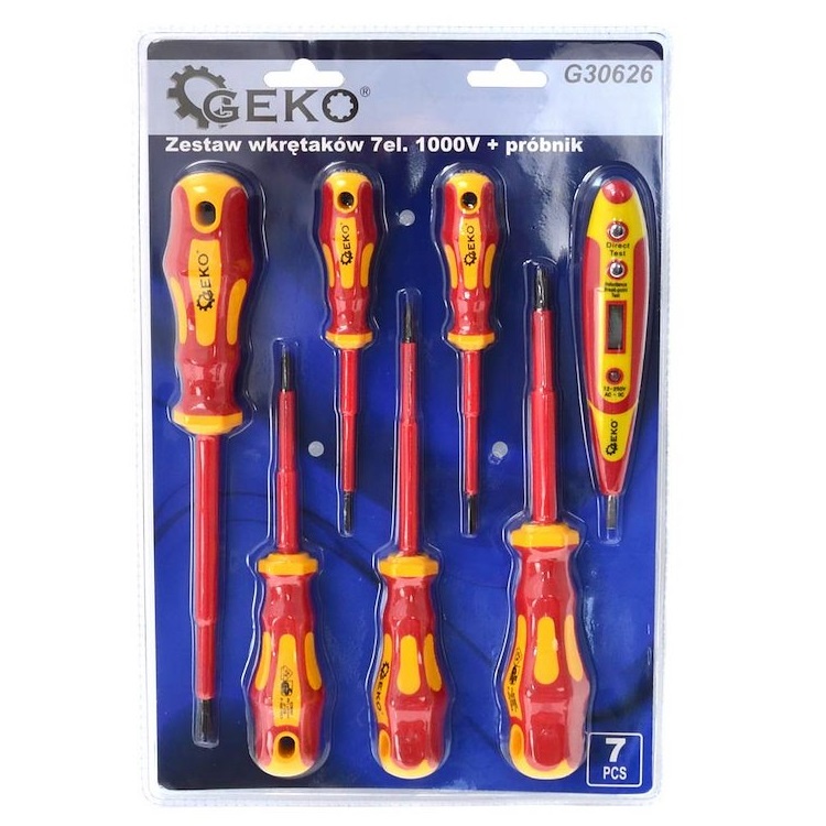 Of je nu schakelaars installeert, groepenkasten aansluit of onderhoud uitvoert aan elektrische systemen: met deze GEKO 7-delige VDE schroevendraaierset met spanningszoeker werk je altijd veilig, nauwkeurig en professioneel.