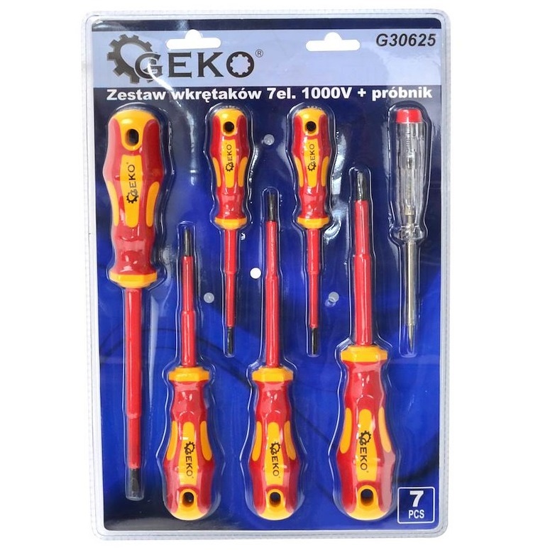 Of je nu schakelaars installeert, groepenkasten aansluit of onderhoud uitvoert aan elektrische systemen: met deze GEKO 7-delige VDE schroevendraaierset met spanningszoeker werk je altijd veilig, nauwkeurig en professioneel.