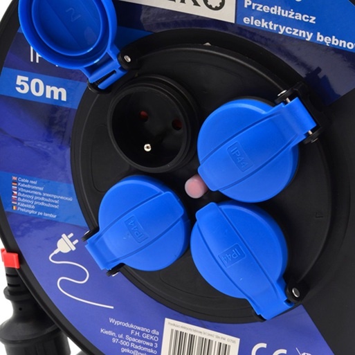 De GEKO elektrische kabelhaspel van 50 meter is dé oplossing voor iedereen die behoefte heeft aan een veilige en flexibele stroomvoorziening. Met vier stopcontacten, een stevige 3x1.5mm² kabel en een vermogen van maximaal 3200W is deze kabelhaspel geschikt voor uiteenlopende toepassingen, van thuisgebruik tot werkplaats en bouwlocatie.
