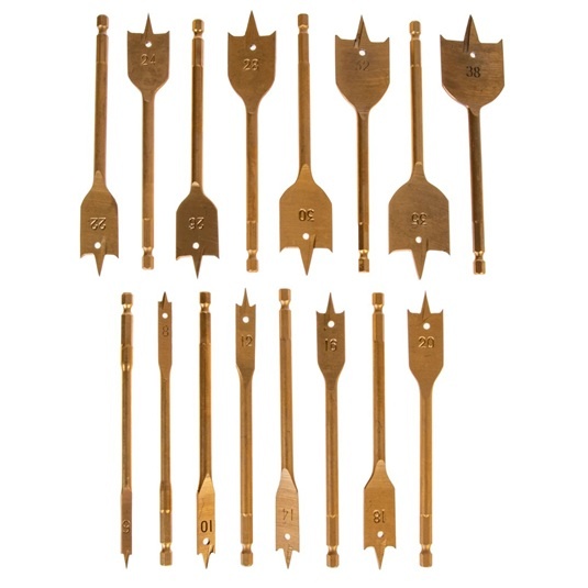 - Set van 16 speedboren – Compleet assortiment van 6 mm tot 38 mm