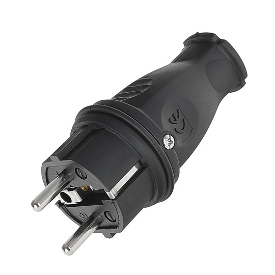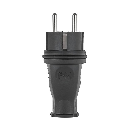 De stekker is vervaardigd uit hoogwaardig technisch rubber, wat zorgt voor extra bescherming tegen stoten en slijtage. De IP44-classificatie maakt de stekker spatwater- en stofbestendig, waardoor hij probleemloos kan worden ingezet in veeleisende omgevingen.