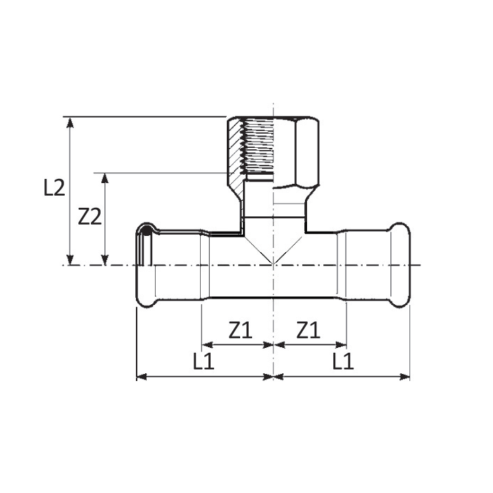 Steelpres C-staal M persfitting T-stuk 54mm x 1/2inch x 54mm FRpF