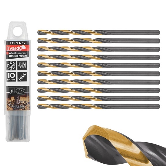 De Tvardy HSS 2.5 mm zwart-gouden metaalspiraalboor is een essentieel gereedschap voor zowel professionals als doe-het-zelvers. Gemaakt van hoogwaardig HSS 4341 staal biedt deze boor uitstekende prestaties en een lange levensduur. De TiN-coating (titanium nitride) vermindert wrijving en slijtage, waardoor je sneller, soepeler en efficiënter kunt boren. Bij bestelling van 10 stuks ontvangt u ze verpakt in een gebruiksvriendelijk doosje.