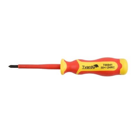 Professionele geïsoleerde VDE kruiskopschroevendraaier PH1, ontworpen voor elektriciens. De ergonomische, meercomponenten handgreep biedt effectieve isolatie tot 1000V. Ideaal voor allerlei werkzaamheden aan laagspanningsinstallaties. De punt van de schroevendraaier is gemaakt van hoogwaardig S2-staal, dat thermisch is behandeld voor optimale prestaties; de hardheid van de punt ligt tussen 56–60 HRC. De schacht van de schroevendraaier is gemaakt van CRV-staal, dat zich kenmerkt door een hogere elasticiteit.